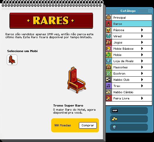 É isso ai, o trono agora está no catalogo do Habbo Brasil. Ele está até com um preço rasoavel (100c), já que ele e considerado valioso.